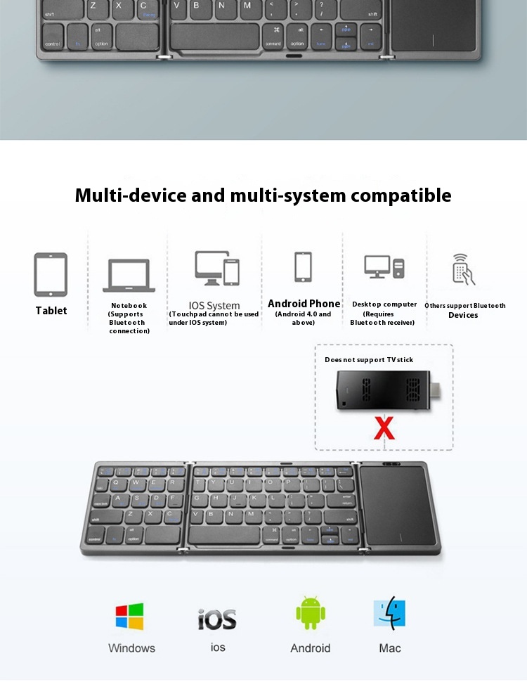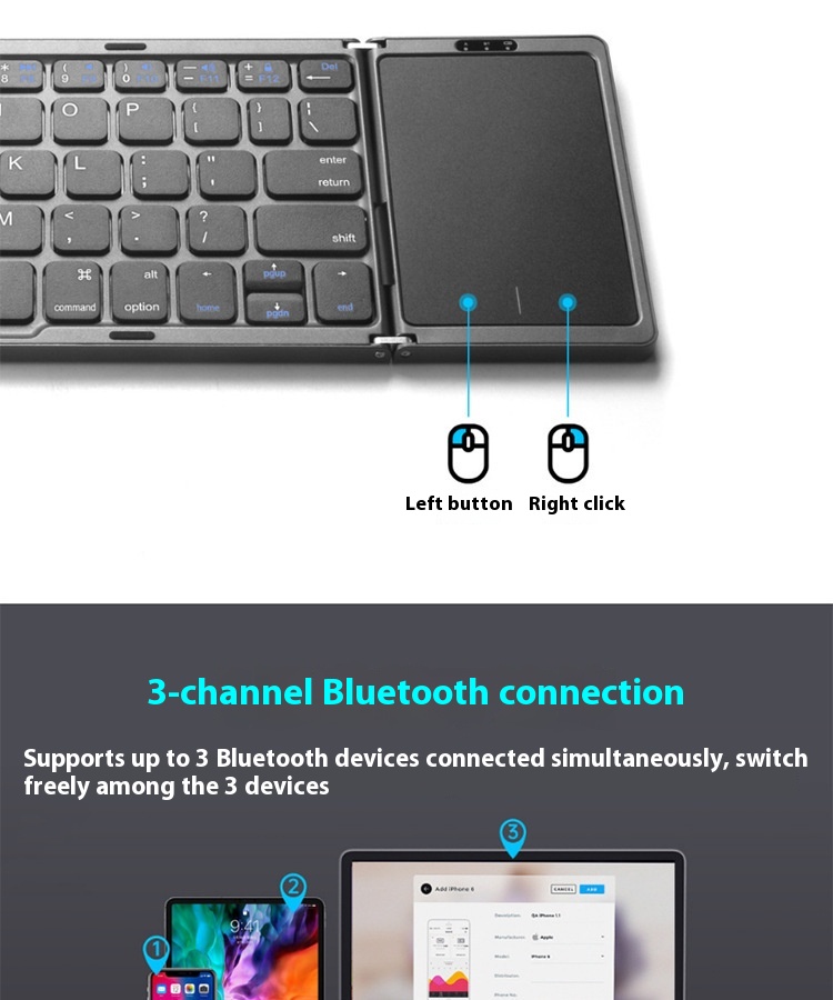 Three Folding Wireless Bluetooth Keyboard Touch Pad Mobile Phone Tablet Notebook Portable Folding Keyboard